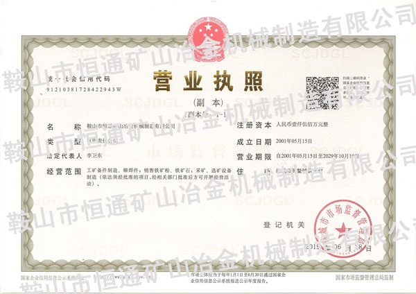 鞍山市恒通礦山冶金機械制造有限公司成立于2000年,由一個職工不到十人,產(chǎn)值不足千萬的小公司,發(fā)展到現(xiàn)在職工兩百多人,產(chǎn)值近億元。涉足的產(chǎn)業(yè)有礦山設(shè)備的制造,以及鐵礦、選礦廠等。多年來,我們經(jīng)歷了很多的風(fēng)風(fēng)雨雨,和太多的不易。感謝陪我們一路走來的朋友們,沒有你們的支持和幫助就沒有我們的今天,我們的工作還有很多的瑕疵和不足,在以后的工作中我們會加倍的努力。愿好人一生平安!